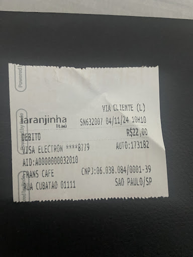 Em resumo, não acho que valha a pena conhecer o Frans Cafe, e isso provavelmente é algo da rede, não acho que apenas nesse que fui isso ocorra, os valores carissimos e o atendimento um pouco...