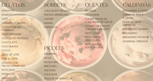 Atualização 16/12/2024: Hoje, fui de copo G (R$ 26) com três sabores jamais imaginados para um diabético em uma sorveteria: Crème Brûlée, Gianduia e Caramello Salato. Montagem perfeita; sem desmoronar; consistência firme mantendo a estabilidade no copo até o fim; textura cremosa no ponto; dulçor exato no sabor. Crème: foi o mais surpreendente. Lembrou-me muito a sobremesa fresca; principalmente no paladar. Aspecto amarelinho e traços no topping lembrando o açúcar maçaricado. Aroma similar ao doce. Gianduia ou gianduja: para quem não a conhece, é uma mistura de 70% de chocolate e 30% de creme de avelã. Era o item mais cremoso do trio. Na degustação, remeteu bem ao recheio do Ferrero Rocher na boca e no olhar. Caramello: uma opção exótica que me remete aos chocolates Ghirardelli de San Francisco (EUA). O sal estava pouco pronunciado (esperado; não havia como ter os floquinhos); o perfume caramelizado apareceu bem; no final, retrogosto agradável e feliz. Fechei a degustação de hoje com um espresso da casa - máquina comercial de cápsula. Não pude ver a marca. Bom acompanhamento, forte, xícara de 40 ml. Experiência nota mil para exploradores diabéticos no mundo dos sorvetes. Salve! :-)