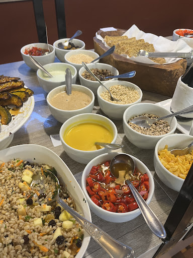 Read moreAmbiente lindo, limpo e agradável, todas as atendentes simpáticas, toda a comida é orgânica, o suco especial de frutas vermelhas com açai (sem açúcar) ainda consegue ser doce e delicioso, comida maravilhosa... O dia que fui dei azar e estava barulhento, mas deve variar pelo público do dia. O buffet era bem variado para uma proposta natural e orgânica, fiquei muito satisfeita. Tudo bem fresquinho. O preço fixo é 46 reais ou por peso custa 64 o quilo. Achei muito justo. Adorei a Almôndega de frango, todas as saladas e vegetais, o cará ao molho branco, e o atum grelhado. As sobremesas são bem interessantes. Voltarei sempre que...