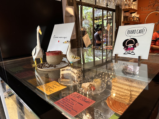 Read more09/06/2025 - Convidado para um brunch de aniversário, estava com boas expectativas por conta do site. Era uma manhã de garoa e friozinho leve. Cenário perfeito para ressaltar o lado charmosamente bucólico dos jardins, árvores e flores. Móveis rústicos e elegantes na decoração. Tudo artisticamente bem selecionado. Painéis de cerâmica. Uma imagem hilária da personagem Mafalda pedindo café. Paredes brancas com belas pinturas e dizeres instigantes. E dá-lhe história! A família Volkmer de origem alemã, que construiu o casarão deste estabelecimento, mantinha uma criação de gansos ali. Por fim, batizaram a casa com a denominação do coletivo da ave. Desde as cerâmicas usadas para servir café, passando pelo pratinho-placa dos sanduíches, tudo remete a cuidado e originalidade. Senti-me acolhido como se estivesse numa casa do interior - e não em um bairro paulistano ao lado da muvuca urbana. E a comida? Ela dá match perfeito com essa atmosfera: feliz, feita de ingredientes selecionados, perfumada e inesquecível. Abrimos os trabalhos com um café coado Hario V60 para 1 pessoa (R$ 15) servido em elegante copo de visual nipônico. Grão Unique (Frutado), 120 ml, extração feita na mesa, temperatura perfeita perdurando até o final; nota de chocolate, mais adoçado. Fazia tempo que não tomava um coado tão gostoso. Muito bom! Dos sanduíches, optei por um best seller chamado Manuelzão (R$ 49): um queijo quente minas frescal derretido no pão de semente de abóbora. Formato quadrado com grãos na casca, aromático, sabor de nuvenzinha em equilíbrio com fatia bem larga do laticínio; tamanho pequeno/médio. Tive de concordar com a aniversariante: o melhor queijo quente de SP. Levei para casa a sobremesa Käsekuchen (R$ 17; adicional de R$ 11 pela compota de frutas vermelhas). BANG! WOW! O bolo de ricota, baunilha, limão e amêndoas é divino! Ao dar uma garfada, a massa parece derreter de tão macia; as raspinhas de limão no recheio criam uma outra camada de experiência. A calda da compota banha essa maravilha com a dose exata de dulçor arrematando a sobremesa. Perfeita! Uma alquimia que supera cheesecakes e bolos similares feitos com os mesmos ingredientes. Ah, o serviço da brigada foi perfeito! Muita cordialidade e muito esforço em atender a todos com o máximo de presteza. Enfim, o Gansaral é uma das melhores experiências da cozinha alemã na cidade! Voltarei lá com certeza! Parabéns a todos...