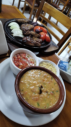 Passeando por Santa Isabel, procurei no Google um restaurante que service feijoada, o dia era um sábado de chuva leve e bem convidativo para tal prato. O "Santo" Google indicou este restaurante porém a decepção já começou no buffet ( que aliás não é barato ::: 59,90/kg ::: ) onde a feijoada parecia um caldeirão com água preta e umas linguiças e orelha boiando... Mesmo assim quisemos "pagar pra ver" e nos servimos de arroz, couve e a chamada feijoada... Pela primeira vez o meu prato ficou mais leve que o da namorada kkk e nos sentamos para almoçar. A decepção estava formada ! Feijoada sem gosto, aguada, linguiça sem sabor e feijão era raridade. O arroz deu uma ajudinha no paladar porque estava agradevel, a couve tbem,muito boa por sinal... Os demais acompanhamentos estavam frios e sem sabor, me senti num hospital, comida sem gosto e não era tão tarde assim, chegamos aos exatos 13:20hs. Não comi tudo e fui pegar outro prato, desta vez focado no churrasco que tbem é por kg. A picanha sem sal, o medalhão de peito de frango não tinha tempero e a única coisa q se sentia o gosto era do bacon. A Fraldinha e o queijo provolone estavam bons, então salvaram o segundo prato. Resumindo..., ou demos azar ou o nível de aceitabilidade dos demais avaliadores é simplório, pois tudo o que comemos ficou em 148,00 reais com as bebidas e com um valor destes dá pra um casal almoçar muito melhor em muitos outros lugares que já frequentamos. Talvez por ser restaurante no centro da cidade e especializado em carnes, o Prato alacarte poderia ter sido uma...