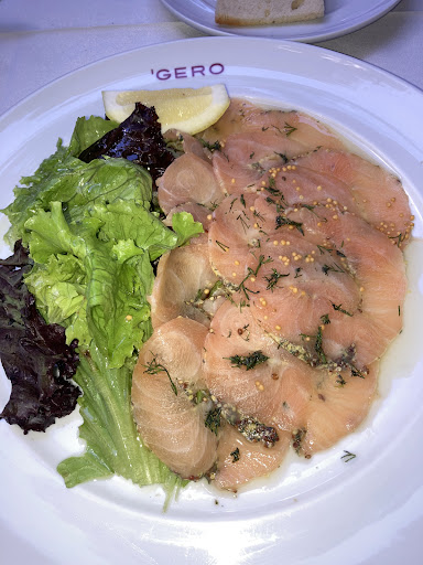 It was my first time at Gero. The architecture takes you to a rustic Italian shed. Very well harmonized antique with a modern touch. Once we got there, the place was full and we were moved to the bar, and the table was cleared pretty quick. The service was EXTRAORDINARY at the table and bar. The menu is very traditional and we started with the "Il Vero Carpaccio", the presentation was great, and the flavor was ok. Since we saw the sign on the wall with "best lasagna in SP" from Quatro Rodas magazine, I decided to go with that option and my wife tried the Gnocchi with sausage that was suggested by the Maitre. Both plates were great. Not spectacular but great. As dessert, we had the "Profiteroles All'Italiana" that was amazing. We also had espresso coffee that we highly recommend since it comes with some cookie samples. That was a big hit. The restaurant in general was a 5 star, but I believed that the menu was overpriced for what they were serving and because of that, I'm giving a...