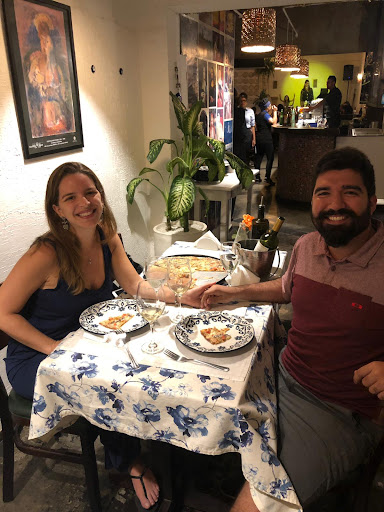 Adoramos nossa visita na pizzaria grega! Primeiro que o atendimento foi muito bom, a Sandra nos recepcionou e fez várias sugestões de sabores ótimas, muito gentil! Atendimento muito bom ! As pizzas são fininhas e bem crocantes! Ponto Positivo: vc come mais Ponto negativo: vc sempre acha que dá pra comer mais 😂 Fomos em um dia que estava relativamente tranquilo, então sempre estavam passando pizzas ou perguntando os sabores que queríamos. Falando sobre o rodízio, os sabores eram dos mais variados, desde os tradicionais como portuguesa e marguerita como os diferentões como Parma com figo e brie com damasco. Todos os sabores que experimentei, gostei ! Também está incluso o rodízio de pizzas doces! Só coube a Romeu e Julieta, mas tinha uma boa variedade de sabores ! Achei que valeu a pena investirmos no rodízio. A conta final ficou em 210 reais para o casal, incluindo os dois rodízios (R$71,00 cada rodízio) uma água, uma cerveja, couvert artístico (10,00 cada) e taxa de serviço. Preços de Fevereiro/2024 para um dia de semana.