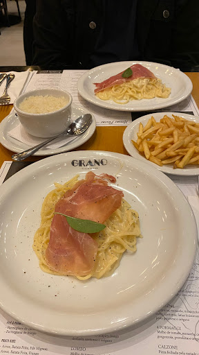 Read moreÉ a segunda vez que vamos ao Grano. Na primeira vez a casa estava mais vazia e ficamos no salão principal. O atendimento foi excelente, muito cortês em todos os pontos: desde o valet até ao serviço, fora a rapidez também. Nessa segunda visita ficamos em outro salão, e a experiência não se comparou a primeira. Digo com antecedência que o atendimento continua bom, todos os garçons e garçonetes são bem educados e nós atendem com clareza. Mas uma coisa é fato, a casa fica atrapalhada quando muito lotada. Uma garçonete apenas para cuidar de um salão é complicado pois prejudica seu desempenho e nem todos os clientes têm a clareza de notar que o funcionário está sobrecarregado. A casa precisa de mais atenção nisso (talvez chamar mais funcionários para dias assim). Outro ponto é a própria pizza. O Grano não é um lugar barato e é justo cobrarmos excelência. A pizza tem vindo com cortes desiguais além de bordas desiguais. Não dá para a borda de uma pizza ser metade de sua fatia praticamente. Na foto abaixo apresento uma fatia da básica de mussarela (custa R$ 79...): tirando a borda não sobra quase nada do recheio. Além do que algumas pizzas vem bem passadas do ponto (bordas bem duras e nitidamente queimadas - claro que não são apenas resquícios do forno, mas algo que passou do ponto) enquanto outras estavam super macias. É preciso uma padronização para não haver decepção. Se estamos em grupo, uma pessoa fica com uma fatia enorme e com muito recheio e outra fica com uma fatia bem menor. Mas reforço a padronização, pois na terceira pizza a própria já veio a altura e bem padronizada. Enfim, o lugar é lindo, bem decorado, arejado, atendimento excelente, vale e muito a visita caso ocorra a oportunidade. Porém a crítica, em suma, é: tentar agilizar o serviço da casa quando cheia e padronizar as pizzas em relação aos cortes e bordas - até pq não pagamos para comer pão e sim pizza.