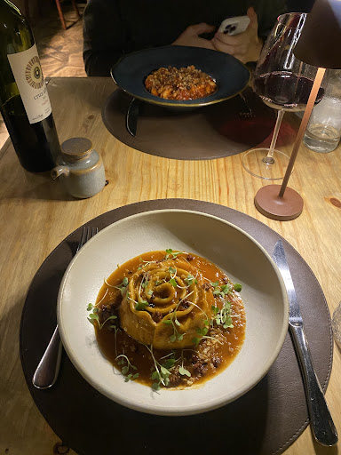 Pratos principais: Ciccio (muitíssimo bem recomendado pelo atendente): não foi o meu prato mas foi extremamente elogiado como um destaque. Com adicional de trufas ficou ainda mais potente. Fettuccine ao molho de pistache com manteiga de trufas brancas, cognac, vieiras, parmigiani reggiano e pangratatto de noz pecan. Carbomare (a forma como eles chamam o Carbonara com adicional de camarões): demorei trocentos minutos para decidir. Fiquei em dúvida entre dois pratos o tempo todo. De repente vi esse carbonara podendo adicionar camarões e decidi por ele rapidamente. Que decisão acertada! Amei o creme resultado da gema com o pecorino, o guanciale e o parmigiano reggiano. Pedi na massa Mezze Rigate e que vem com muitos camarões deliciosos. Recomendo!