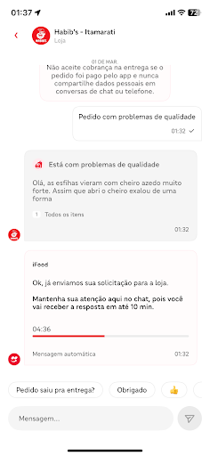 Read moreJá frequentei bastante este lugar, porém hoje fui atrás de uma informação de um pedido feito ontem 23/08 feito pelo app do habibs, no app está como entregue e foi cobrado porém eu não recebi o meu pedido fiquei ate 00:20 esperando e nada, e hoje fui na loja mais próxima da minha residência, procurei pelo responsável para ter um respaldo, a moça que se disse em responsável cujo nome Iolanda simplesmente me disse o seguinte: infelizmente não posso fazer nada, depois de muito insistir ela falou com o superior dela que enviou fotos da minha situação e disse que retornaria, porém saindo sem solução e sem respaldo, só mais uma observação ela me mostrou o número do sac numa placa e disse liga lá e tenta resolver, 0 vontade de resolver meu problema e ajudar, como não é problema deles ?quem cuida do app do Habibs não é o Habibs 🤔 qual o sentido ? eles não respondem pela empresa? nada faz sentido, inclusive o telefone do sac que ela me mostrou vai no whats da tia Eda que tbm não resolve nada, estou indignada com o atendimento dela e aguardo uma posição dos...