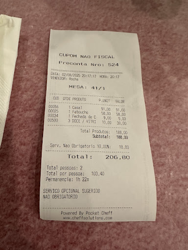 Read more04/08/2025 - Amo conhecer instituições paulistanas como esta. Nascido como uma fábrica de salgados e doces no Brás em 1973, este restaurante preza por manter as tradições da cultura árabe em ingredientes, temperos e cardápio. O amplo salão de 128 lugares é disputado em feriados e finais de semana. A brigada consegue atender a todos com habilidade e experiência - desde o grupo da vovó com netos até a galera de happy hour. Num sábado de fim da tarde (perto das 17h), conseguimos sentar sem espera e com assentos à escolha. Como não temos um apetite voraz e os pratos são bem servidos, optamos por uma salada Fatouche (alface, tomate, cebola, pepino, pimentão, rabanete, hortelã, salsinha, pão sírio torrado e sumak) e uma esfiha fechada de entrada e um Casal (um michui de filet e uma kafta acompanhados de arroz com aletria) de principal; Beklawa de pistache (pastel de nozes e pistache triturados envolvidos por massa filo e banhada por xarope ou mel) de sobremesa. Destaques: WOW para a salada!!! Molho maravilhoso!!! Servida em uma tigela de inox, ela chega geladinha com predominância da acidez do limão. Esfiha fechada excelente e sai quentinha a toda hora da cozinha - recheio úmido com tamanho e sabor para várias unidades. Carnes assadas com excelência em porção generosa para até três pessoas. A beklawa estava estaladiça; massa levíssima; ponto de doce equilibrado; finalização da cobertura suave. O ambiente segue o estilo de casas tradicionais - balcão à frente para quem está com pressa e mesas ao fundo. Não é sobre luxo e sim acolhimento familiar - de seu fundador Halim Sultan e de todos seus colaboradores....