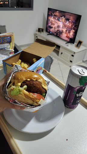 Read moreHambúrguer sensacional! Os dois hambúrgueres vegetarianos deles são muito bons, mas indico o Veggie Burguer porque vem com salada. A batata é muito boa. O pedido sempre chega quentinho em casa e a entrega é realmente muito rápida. As embalagens são todas de papel e com desenhos fofinhos.