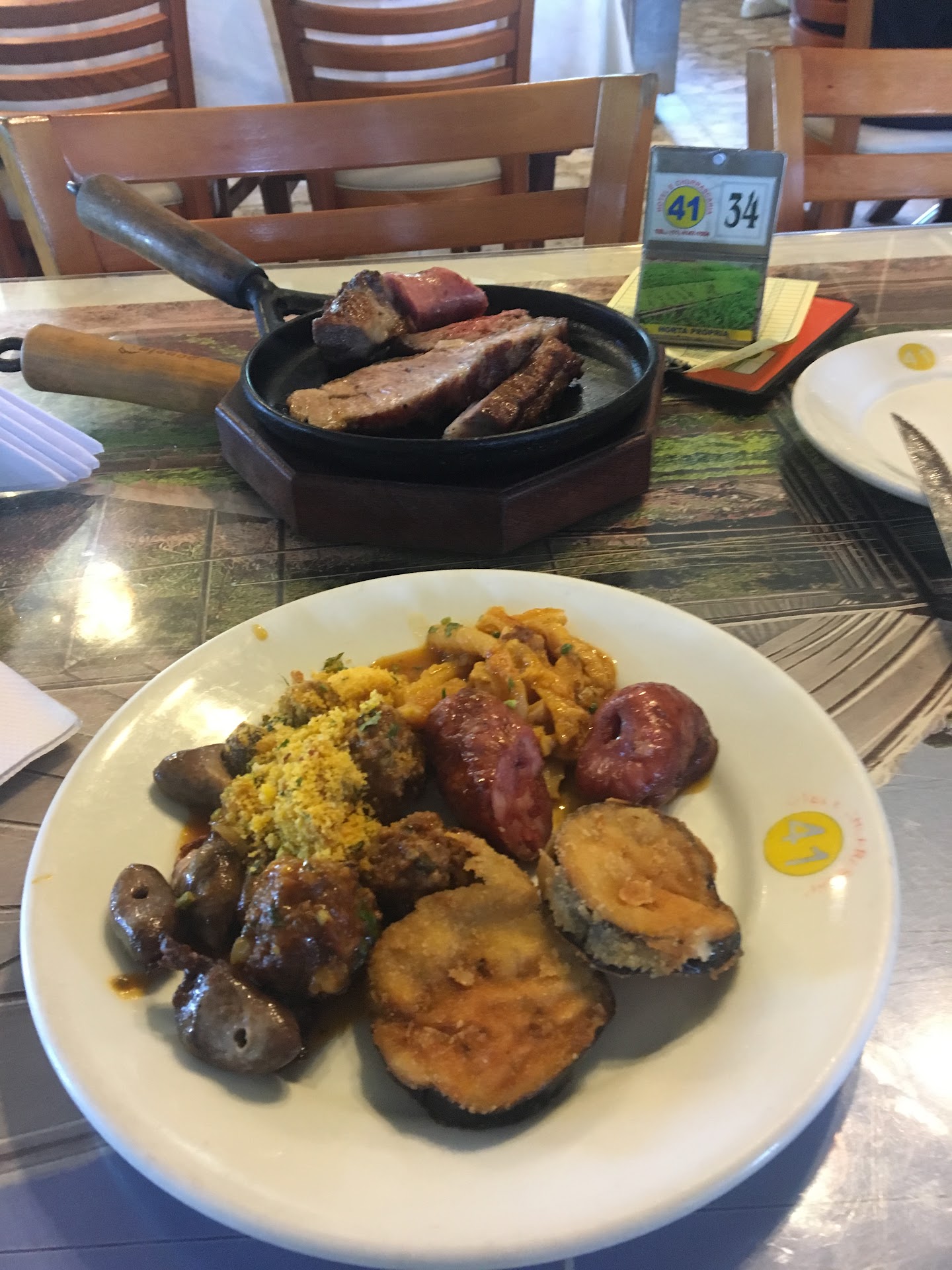 Read moreSou suspeito para falar pois gosto muito dos restaurantes e churrascarias localizados em postos nas rodovias pelo Brasil... locais na maioria das vezes simples, como é o caso da churrascaria do posto 41 (denominação de uma época em que se conhecia o comercio local de acordo com o km da rodovia... exemplos da BR 116: posto 65, posto 67, posto 68, posto 71 (esses dois ultimos já fecharam a algum tempo, mas ainda são um ponto de referência...), esses tinham como caracteristica o km da rodovia em sua localização e ficaram, ultrapassando suas razões sociais...) mas todos eram ou são locais onde se acha um mini rodizio ou comida caseira simples, temperada, com preço honesto e sem mimimi... muitos tem lojas de produtos tipicos da região sul do país, e produtos do dia a dia do caminhoneiro... vale a visita em cada detalhe... ...