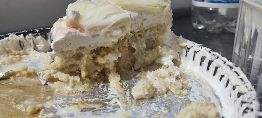 Encomendei um bolo de festa, de doce de leite com abacaxi, ao fazer o pedido a atendente perguntou 3x se eu queria mesmo o bolo com esse recheio, falei q sim, perguntou se combinava, eu disse q sim q eu gostava. Ok pedido feito, sinal pago. No dia da festa retiramos o bolo, pedi 1,5kg e achei estranho pois veio muito pequeno que o normal, mas ok. Ao cortar o primeiro pedaço advinhem minha surpresa? NÃO era o bolo encomendado, veio um creme branco com abacaxi, o creme era tão sem sabor que eu não consegui identificar oq seria. Tive q comer pois estava em um restaurante com pessoas aguardando o pedaço do bolo. Nunca mais peço nada na confeitaria daí. Não respeitam os pedidos feitos. Obs. O tom marrom que aparece na foto e a massa 🤡 Obs2. O board cake era de papelão, um pedaço de caixa cortado, enrolado no papel alumínio 🤦