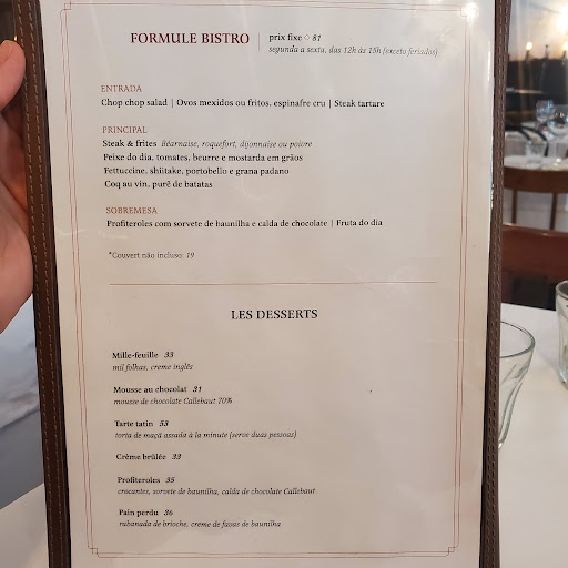 O ambiente tem um ar que busca sensualidade e não a tradição da cozinha francesa. É um ambiente de uma taberna qualquer, e que infelizmente, atrai contextos estranhos. É mal frequentado, ouve-se conversas imorais, impróprias não só para crianças, mas para qualquer um, extremamente desagradáveis. Do outro lado, casais com intimidades desagradáveis. O ambiente tem um ar muito ruim, desconfortável e de fato não trás o mínimo ar de um ambiente francês clássico, o mínimo. Ele é sim um ambiente que remonta a revolução e ao libertarianismo, com algumas comidas francesas e só.