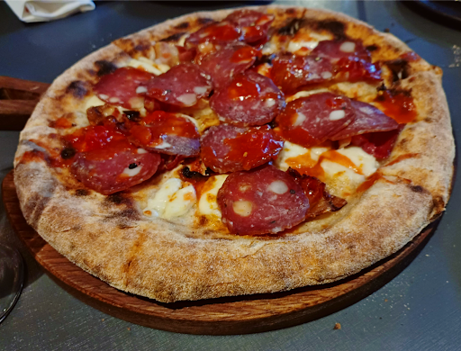 Read moreO espaço é elegante e intimista, gostei muito da pizza, principalmente da margarita, a massa é leve e gostosa, o quantidade de queijo e molho de tomate é equilibrada trazendo harmonia no paladar. A pizza na foto não foi a minha favorita, mas mesmo assim eu gostei. A única coisa que tenho de reclamar é a pizza doce que de doce tem nada kskkk tinha só um tiquinho de chocolate branco e acho que não se adequa ao paladar brasileiro. Uma das atendentes não foi muito agradável, diferente da outra que foi bem prestativa e educada. Se vc quer um lugar que foge um pouco das pizzas brasileiras você está no...
