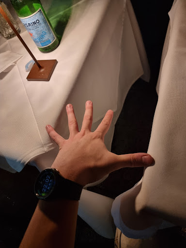Entendo que o fluxo do restaurante seja bem movimentado e claro que não ficaríamos ocupando a mesa por muito tempo, mas a forma como as coisas aconteceram foi desnecessária. Tive a impressão de que isso teve mais a ver com o perfil do nosso grupo do que com a fila de espera, para falar a verdade. Dito isso, tenho certeza de que não estávamos incomodando as mesas ao redor: éramos um grupo pequeno de quatro pessoas conversando, mas falando baixo durante toda a refeição...