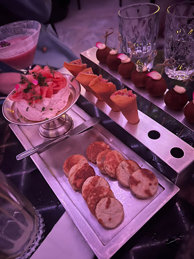 É tanta coisa que se deve levar em conta neste bar, louge, restaurante... Cada um deve ter sua experiência então fica claro aqui que eu não estou dizendo NÃO vá. Somos recebidos as 20:22 ( aproximadamente)por uma recepcionista linda, o que tem de linda tem de blase, vou usar essa palavra pra não usar mal educada mesmo. Ela sugere pra ficarmos na floricultura e tomar drinks ( $33 cada). Essa ideia da floricultura é brilhante, deveria ser aproveitada melhor com: um bar Men educado, simpático e disposto, comidinhas gostosas e um som ambiente. Pedi um sanduíche ($34): pão branco com uma massa perfumada com limão siciliano. Eu ri. Até nossa entrada lá pelas 23:20 ficamos nessa floricultura em frente um buteco ouvindo: som anos 80, risadas, pessoas engraçadas. Me arrependo de não ter ido pra lá. Enfim...