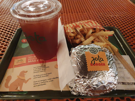Read moreJá tinha passado lá outras vezes, comprei o lanche pela primeira vez, no geral, foi uma experiência bacana, mas as considerações e impressões do local. O atendimento é eficiente, rápido por ser feito na hora, e os atendentes são bem educados. Não tem muitos itens no cardápio, então não tem muita lógica demorar para pedir, acho isso positivo. A casa oferece hambúrgueres no estilo Smash, então que não gosta de bem passado o hambúrguer, passe longe. Pedi o lanche Jota Jota duplo, que dá umas 160gr de carne, mais ou menos, o lanche é muito leve, comeria outro tranquilo, mas esqueci de pedir pra tirar o pickles (não gosto), é uma versão de X-bacon, deveria ter pedido um clássico com alface e tomate(meu gosto pessoal), no lanche não vem nenhum dos condimentos de fast food padrão(ketchup, maionese, mostarda), eles dão sachês a parte, se bem que não veio mostarda na minha bandeja. As batatas me informaram que vem com cascas e pareciam queimadas as pontas, pedi para trocar, trocaram sem problema nenhum, mas acho que é patrão da casa. O que me surpreendeu muito foi o milkshake, simplesmente maravilhoso, com certeza irei provar os outros 2 sabores que não provei, tomei o de morango, falta o de chocolate e baunilha, se for tão bom quanto o que tomei, vou ficar viciado...rsrs, mas poderia ser 500ml no mínimo, o copo é 400ml. O ambiente é bem aconchegante, não sei se são eles que administram ou o shopping,mas é bem instagramavel, o ruim é dia chuvoso ou muito frio, não dá pra ficar no local. Nisso gastei por volta de R$50, não é um absurdo, mas valeu a experiência, aceita todos os cartões e vale refeições também(isso me salvou), tem hambúrgueres melhores em outros lugares, sim, mas conheça o local e faça veja se concordamos. Muito obrigado pela experiência...