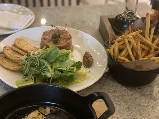 Read moreO Juli abriu a pouco tempo e estávamos super ansiosos pra conhecer. O restaurante é super charmoso e tem um clima bem agradável. Fomos em uma terça feira à noite para o jantar e fomos atendidos pelo Rick e pela Tamara, que foram incríveis. Rick ajudou a gente com os pedidos, fez as recomendações e acabamos pedindo de entrada os pães da casa (R$ 18), que são uns pedaços de massa pizza temperados com azeite, alho, alecrim. São uma delícia, vem quentinhos e a massa é feita lá. Aliás, tudo é feito lá. Além dos pães, pedimos um steak tartare (R$ 67) que estava bem gostoso, acompanhava fritas e salada. Já estávamos quase satisfeitos na entrada, mas de prato principal pedimos um prato do dia que era um filé mignon coberto com queijo brie gratinado e risoto de açafrão (R$ 95) e ravioli de abóbora com queijo canastra (R$ 44) estavam bem gostosos também. Queríamos ter experimentado a sobremesa mas acabamos não aguentando, porque trouxeram pra gente experimentar também um pedacinho do pão de calabresa, que estava sensacional. No total, a conta saiu R$ 263 para duas pessoas, mas pedimos a mais. Com certeza voltarei e...