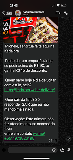 Read moreHoje, dia de preguiça, resolvi pedir pizza em uma das casas Pizzarias da Kadalora que eu mais tenho apresso. Realizei o pedido pelo app como de costume seja ele pra ser retirado ou entregue em casa. Pedi que fosse entregue em casa. Até aí tudo tranquilo. Quando menos esperava as 23:09 recebi uma ligação com uma das atendentes Carol relatando que minha taxa de entrega estava errada e que de 91,90 seria cobrado 95,90. Para minha surpresa na hora da entrega foi cobrado 99,90. Mas, antes desta surpresa desagradável eu tive outra. Pois como relatei acima a atendente entrou em contato as 23:08 e informou que meu pedido já estava a caminho além de dizer que a taxa de entrega estava errada. Porém, no app constou que eles haviam liberado apenas as 23:27. As 23: 53 entrei em contato pela primeira vez para saber a razão e fui informado que pelo fato de eles terem uma alta demanda, por essa razão estava com atraso nos pedidos. Ao dizer que isso não justificava a atendente falou que iria falar com o gerente, questionou o meu número antes e uma outra atendente veio falar comigo e informou que meu pedido estava a caminho, que eu deveria aguardar um momento e simplesmente desligou o telefone na minha cara. Não por contente a atendente disse que é previsto a demora já que eu estava longe da pizzaria, aí informar que isso não era razão já que eu vivo pedindo pizza lá, foi neste momento que a atendente desligou o telefone. As 23:59 entrei em contato novamente e quando falei com a atendente Carol e relatei que queria falar com o gerente. A mesma disse pra eu aguardar um momento e um tal de luka me disse que o gerente estava ocupado e que meu pedido já deveria chegar e desligou o telefone na minha cara novamente. Pensei que as surpresas haviam acabado mas ao receber a pizza e além de pagar um valor que não foi dito, a pizza estava fria, a Coca cola estava chova. Pexima escolha em realizar o pedido hoje. Hoje só frustração, decepção e estresse! Sendo que era pra ser algo prazeroso!...