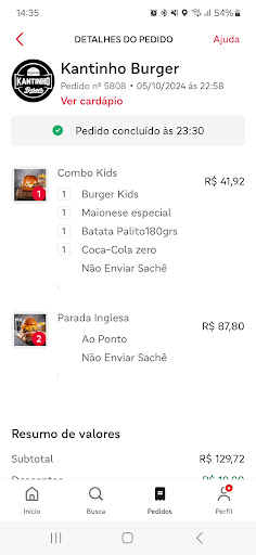 Read moreRealizei um pedido via Ifood de R$50,00 as 20:00 que não chegou até minha casa , as 22:00 fui informado que iriam enviar novamente, voltei a estudar e aguardar, quando pego no celular novamente as 22:50 tem uma mensagem do estabelecimento, dizendo que o entregador voltou com o hamburguer pois não conseguiu contato na minha casa, IMPOSSÍVEL. Moro aqui há anos e nunca aconteceu isso.