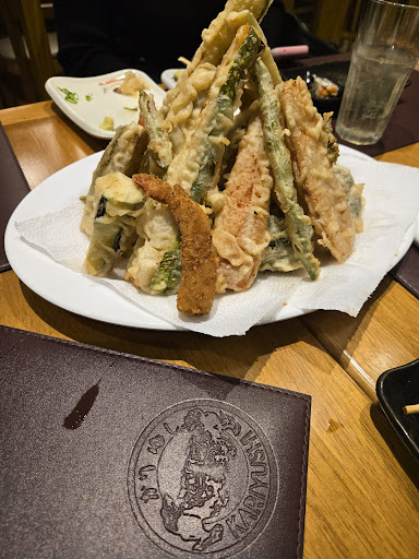 Read moreLugar simples, com um rodízio bem simples (e fraco) e um atendimento mais simples ainda (e beeem fraco), mas com preço de restaurante bem bom (caro demais pelo que te entregam!!!). Vale a experiência? NÃO! Infelizmente, por todo o contexto, nossa experiência não valeria nem as 3 estrelas, mas pelo sashimi e niguiri de salmão e pelo camarão empanado, que estavam muito bons, acabaram ganhando esse ponto a mais. Por outro lado, algumas coisas não deveriam nem servir, como o shitake (muito ruim), o guioza (massudo), o sunomono (que eu acho que esqueceram de temperar, pois não passava de um pepino fatiado com gergelim em cima) e os sushis que vieram com o arroz ressecado, como coisa que tivesse sido feito há algum tempo... justamente aqueles que nem todos comem... (confesso que achei estranho...) Ok, você pode estar pensando: "cada um tem seu gosto!", e eu concordo, mas quando seu filho, de 8 anos, que ama comida japonesa e estava morrendo de vontade, comenta espontaneamente que o outro restaurante é bem melhor, por melhor que realmente o outro seja, bom bom este não deve ser... Tudo bem que até ele já estava irritado com o atendimento ruim, pois, além dos atendentes perdidos, tudo era demorado e quando chegava a porção era ridícula, alguns pratos pareciam menu degustação, outros mal dava pra 1 pessoa experimentar, quem dera 2 pessoas! Por um momento chegamos a achar o atendimento até engraçado, pois pedimos uma bebida, chegou outra, pedimos um temaki, chegou outro, pedimos para não vir X e Y, veio, mas a demora em chegar o que pedíamos e, depois de todo o tempo da espera, ver o tamanho das porções, não tinha como não se decepcionar, por que a sequência era uma nova demora pra pedir e mais um tempo de espera... Chegou que meu filho cansou de esperar (eu também), não quis mais nada e eu acabei não conseguindo pedir o que gostaria, pois ele já não queria mais esperar. Então, como a "cereja" do bolo: a sobremesa, que só tinha de chocolate, depois não tinha mais, só de creme, depois não era de creme, só tinha de chocolate, ... mas trazer, não trouxeram nada! Então, melhor ir embora, afinal, o que era pra ser uma noite agradável, acabou se tornando uma experiência lamentável... Pagamos (R$ 120,00 adulto e R$ 80,00 abaixo de 10 anos, o que foi extremamente caro pelo que recebemos) e fomos embora, sem...
