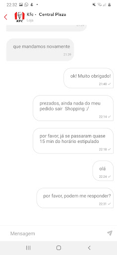 Read moreFui neste final de semana, no dia 20/01/2024, no KFC do shopping Central Plaza, fazia tempo q não ia, não sou muito de reclamar, mas não tem como , pedi dois combos, um veio sem problema nenhum, o outro veio com batata frita gelada e o lanche faltando ingredientes e um pedaço de frango faltando comprado a parte! Não quis reclamar pq a fome era grande e não queria esperar fazer outro, só informei do pedaço de frango q veio faltando e logo me deram, espero q esta crítica seja construtiva, afinal de contas pagamos pelo q consumimos,...