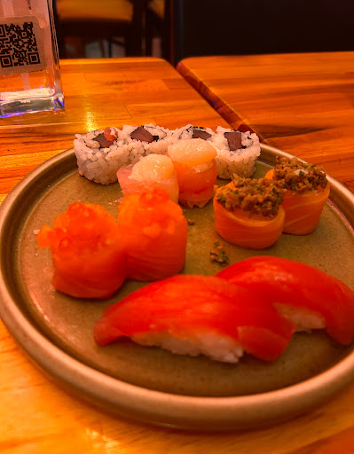 Read moreRealmente decepcionante e caríssimo! Peguei o rodízio ! O salmão NÃO era top inclusive primeira vez q vi isso na vida vinha um brilho no peixe e uma fáscia ( pele branca sobrando ) acho q faltou raspar mais ( algo assim / faltou alguma técnica não entendo do preparo ) e se desfazia ( desmoronava) hora de comer ! Pior 😅 parte infestou um cheiro de limpeza parecia o produto VEJA num momento do jantar , que eu cheirava os salmões para ver se tinha produto de limpeza nele !!!!! Provavelmente veio da cozinha de uma porta branca com um vidro redondo!!!! Veio um salmão na pedra achei aquilo meio sem higiene! Me fez questionar será que eles lavam pra servir o próximo cliente ?! Existe lavar sal de pedra ? Pq eu coloquei meu rashi lá ! Som bemm alto da rádio kiich anunciando que fazem festas no local que de sexta tem open bar e umas músicas incômodas ( gosto de silêncio para comer ) Enfim ....O que eu gostei na tv passava umas chinesas na área rural que depois vendiam suas verdura e os garçons estavam atento a mesa em retirar pratinhos e ficar próximo/ mas eu pedi umas coisas que ele falhou no pedido ! tive q refazer pedido depois ! Trazia o número de peças incorretos do solicitado! Fui por indicação do meu cartão de crédito agora vou ficar com um pé atrás achei que fosse...