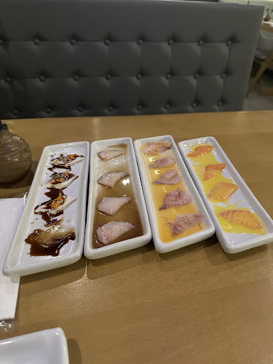 Read moreA comida nao condiz nenhum pouco com a quantidade de estrela que esta no Google, nao sei qual o segredo, pq comida boa com certeza não é. Não vale R$130,00 o rodizio! A moça da recepção super simpática. Garçom, não sei e estava muito sobrecarregado, mas nem olhou muito na nossa cara, porém quando ele conseguia o atendimento fluía legal, com bastante simpatia. Comida, o niguiri de salmão veio com uma mancha preta, salmão grelhado estava bem seco parecia q ja estava pronto e só esquentaram com um gosto bm estranho, o misso demorou um um bom tempo para chegar e quando chegou estava morno, shimeji mesma coisa do salmão grelhado, estava passado do ponto, com gosto de que só foi aquecido brincamos ate q estava com gosto de papel. Nao teve um salmão que estivesse bem limpinho, sem as rebarbas. Os peixes nao pareciam tão frescos, principalmente o peixe branco. Pastelzinho de shimeji 10/10, uma delicinha. Carpaccio de anchova negra com geleira, 10/10 uma delicinha. Polvo com azeite "trufado" bem gostosinho. Gostaria Não sei se os responsáveis vão ler ate o final minha avaliação mas caso leia... seria bem interessante as comidas virem frescas, sei q muito restaurantes que servem rodízio de comida japonesa ja deixam algumas coisas prontas para adiantar a correria, mas tem certas coisas que nak vale a pena. Fica com gosto de velho, com visual e cor estranha. Tomamos dois chás gelados, de gengibre e hortelã e matte com limão, estavam bemmm mavilhosos foi o q salvou a noite! Ah e as louças são bem fofas, descartando uma tábua de madeira com uma montagem bem...