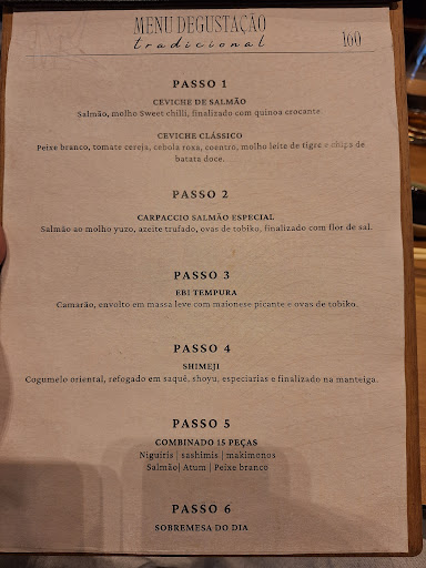 Apesar dos peixes serem frescos, os cortes impecáveis (melhor sashimi de polvo até agora) a experiência é péssima pra quem gosta de culinária japonesa e tem essa curiosidade sobre as opções , variações do chefe da casa os ingredientes e etc.