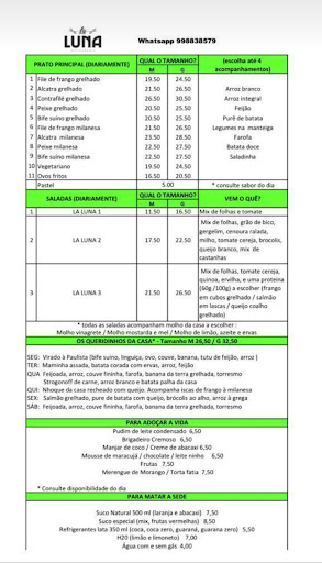 Read moreLa Luna é um restaurante com um ambiente organizado, caprichoso. No fundo do restaurante, eles tem uma pia para você lavar as mãos antes de almoçar. É Self- Service, a comida é gostosinha. Com a pandemia, não fui mais no local. Porém, pedi marmitex esses dias e gostei porque eles tem opções de tamanho para quem come muito, para quem come pouco. Tamanhos: M G. ( foto ilustrativa, junto com valores). Eu peço tamanho M e vem essa...