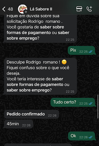 Pedindo na pizzaria pela quarta vez, existe uma demora, mas eles avisam que normalmente leva 80 min, então ok, mas o que aconteceu hj foi surreal. Pedido realizado 21:54, entrega as 00:01, acreditem, como eu disse só peguei o pedido pq tenho criança em casa que tava esperando, mas o pior nem é isso, o pior é o descaso no atendimento, msg automáticas que te irritam mais ainda, aí quando a atendente resolve se manifestar ainda faz deboche, pq eu disse, "numa hora dessa essas msg automáticas não ajuda né", a resposta que veio, " não mesmo", e um áudio dizendo que o motoboy já tinha saído e que tava aqui na rua, saí na maior chuva e fiquei mais 15 min esperando o motoboy, questionei novamente ela me mandou a localização dele, nem uma satisfação decente, nenhum pedido de desculpas, e estou digitando após as crianças comerem, pq achei desaforo passar batido assim, e pelo que vi nos comentários daqui pra frente é só pra trás se não tiver alguém comprometido com o atendimento dado, esfiha é top, mas comer depois de um estresse desse nem cai bem. Lamentável que a...