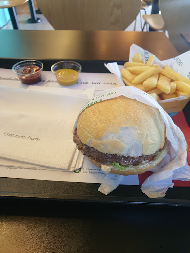 Read moreApesar de ser em uma estrutura de contêiner, o ambiente é extremamente bem climatizado e isso se percebe logo ao entrar, sensação agradável. Adoro o sistema automatizado dos tótens, muito rápido, clean, claro, fácil de usar. Minhas 4 estrelas são somente pelas ainda poucas opções veganas de sanduíche (hamburguer vegano e falafel vegano) e dos sorvetes não tem nenhuma opção, que pena. Adoro os chás gelados pra refrescar. Os pedidos não demoram muito pra sair e são bem preparados. Destaque para o já famoso pão da casa que é sensacional. Na decoração amo praticamente tudo, mas acho o máximo as mesas de madeira serem certificadas (vc pode apontar para o QR code marcado em cada uma delas e saber direitinho...