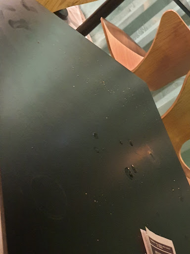 As mesas têm quatro cadeiras mas não cabem quatro bandejas nas mesas. Tivemos que tirar as bandejas para comer. Quem planejou isso está de parabéns.