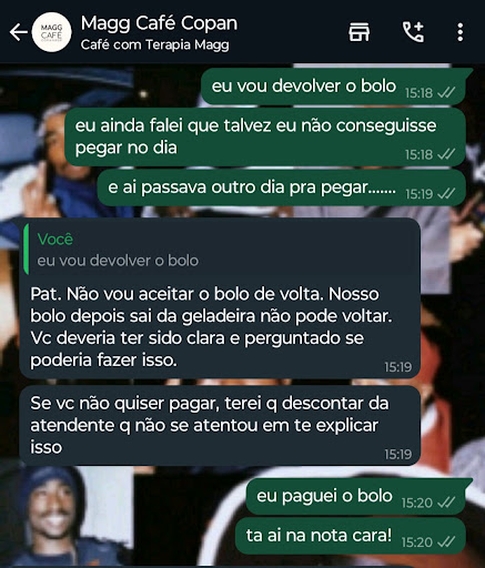 Read moreFrequento o Magg há cerca de 5 anos, tanto para almoço como para um café social com um docinho após o almoço. Nunca mais! Em 22/08/2022 estive no café com as minhas colegas de trabalho e a atendente Aline simplesmente nos expulsou da mesa - enquanto tomávamos nosso café - para que outros clientes (que tinham ACABADO de chegar) sentassem juntos, pois, segundo ela, nós não estávamos todas consumindo. Tinha outras mesas disponíveis, ela nem sequer perguntou se faríamos novos pedidos, precisamos nos retirar da mesa com o café pela metade, sendo que uma das minhas amigas precisou procurar uma cadeira para não ficar de pé, pois a Aline foi de extrema deselegância, passou inclusive a ignorar nossas perguntas... Nunca imaginei passar por tamanho constrangimento e ao pagar a conta não houve sequer um pedido de...