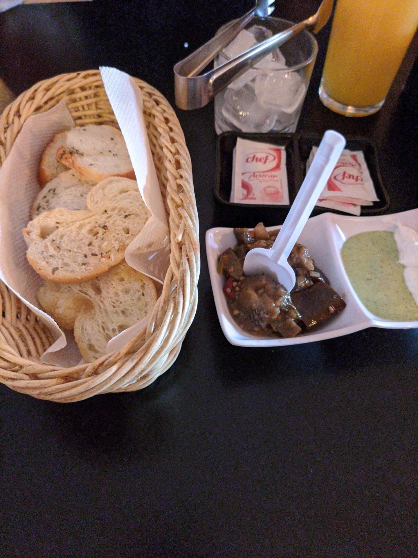 O camarão que vinha com molhos, veio seco com apenas limão, o suco aguado, pedimos açúcar mais o garçom não levou.....