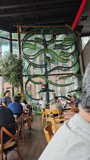 Esse Mania de Churrasco é um restaurante diferenciado da rede pois as demais ficam em praças de alimentação de shoppings e este é um restaurante apenas dele. Possui um brinquedão enorme para as crianças poderem escalar até o teto praticamente podendo ser utilizada para entreter as crianças enquanto o pedido é preparado e não há custo para utilizar o brinquedão nem monitor para tomar conta. O cardápio é bem amplo e diferente das lojas dos shoppings. Você tem a opção de escolher a carne, o ponto dela e as guarnições. Possui porções de pasteizinhos, fritas etc... que pode ser pedido a parte ou como aperitivo para acompanhar as outras opções com tábua de cortes de carnes a seu gosto (linguiça, frango, cortes bovinos...). O menu possui também opções de hambúrgueres. A comida é bem servida (pedimos 2 pratos e deu para fazer um pratinho para o nosso filho de 7 anos), chega montada no prato de acordo com o seu pedido. Eles pedem o nome da pessoa mas na hora de entregar, entregam pelo nome da carne que foi pedida. A carne (pelo menos o que pedimos) veio bem seca e por consequencia, um pouco dura. O feijão, um pouco salgado, mas deu para comer. O frango desossado chegou bem gostoso! Estava no ponto (de tempero e bem crocante). O serviço dos atendentes é atencioso e gentil mas em especial a uma moça que entregava as bebidas, ela via o pedido pronto no balcão e não pegava para entregar. A moça de dentro do balcão, que preparava as bebidas colocava na bandejas copos com aquele "branquinho" de gelado, mas quando o pedido chegava à mesa, estava já normal, transparente, com aspecto de copo molhado apenas. Enrolava para levar os pedidos a mesa. (Por isso meu conceito ruim no "serviço"). No mais sempre tinha uma pessoa limpando o local, os atendentes muito atenciosos, o som estava numa altura tranquila, o local é muito gostoso para ir com crianças seja para uma refeição ou lanche, ou ir com amigos para um happy hour. O pagamento pode ser feito na comanda individual ou tudo junto e pago no totem, na entrada do restaurante. Se não me engano, o pedido também pode ser feito no totem. Não tenho certeza, me desculpem, pois fomos em família grande e...