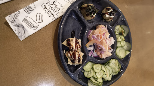 Entrada: Foi servido uma entrada de ceviche com molho ralo, sem acidez, com fatias em um padrão retangular irreconhecível. Um hot roll com farelo de doritos... doritos não é algo que se coloque em uma comida japonesa para começar. Um outro hot roll com algo que deveria ser molho tare. Um sushi de algas que foi aceitável para o paladar e algo que eu não sei descrever, um tipo de saladinha com pimentão, kani, peixe branco e azeitona. Gente, azeitona...