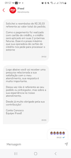 Pelo tamanho da empresa devia exigir mais funcionários qualificados. É uma vergonha, estou grávida e já é a segunda vez que vem faltando minhas coisas, peço suco eles mandam coca cola. Foi a última vez que passei por isso porque a próxima vez eu vou atrás dos meus direitos do consumidor, não acho meu dinheiro no lixo, se peço uma coisa quero receber oque está disponível no Ifood, já trabalhei com Ifood e sei que dentro da plataforma existe uma opção de pausar alguns produtos quando estão em falta, se não tem o produto na loja não deixa disponível no aplicativo, nunca tem ninguém pra nós dar suporte é revoltante essa situação de descaso com quem tá em casa esperando pelo pedido, estou reclamando por algo que eu paguei e nunca...