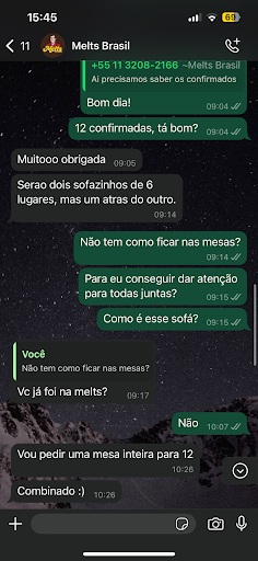 Uma das piores experiências de locais em SP. Escolhi a Melts para comemorar MEU ANIVERSÁRIO pelas várias avaliações e comentários positivos do insta. Tudo parecia ser ótimo nas redes sociais. Pelo WhatsApp, eu pedi uma mesa para 12 pessoas. Disseram que reservariam 2 sofas, um atrás do outro. Eu pedi mesa pois não conseguiria dar atenção para todos, por ser meu aniversário. Quem respondeu no WhatsApp confirmou: “vou pedir uma mesa inteira para 12”. Chegando lá, foi uma confusão por conta dos lugares, tudo MUITO apertado, me encaminharam novamente para os dois sofás e disseram que a mesa não estava reservada, pois quem já estava nas mesas “sempre estava presente no estabelecimento”, ou seja, deram prioridade para clientes que estão sempre lá e não por ordem de reserva. Se confirmaram que vão reservar mesa, não acreditem. Eles mentem para lotar o local e colocar as pessoas em qualquer canto. Ficamos nos dois sofás que não cabiam ninguém, ficamos apertados o tempo todo, assim como todos esbarram em tudo pois o local não suporta a quantidade de pessoas e mesas. Ventilação 0 mesmo tendo ar condicionado. Você fica suando o tempo todo, até parado. Todos os meus convidados reclamaram do calor e de estarem super apertados no sofá. Fiquei totalmente deslocada e chateada. O karaokê uma farsa. Os funcionários cantam muito mais que os clientes, as mesas da frente são a panelinha deles e cantaram muito mais músicas do que as outras mesas (eu tinha duas mesas e eles também, eles cantavam duas seguidas e quando chegava nossa vez, já chamavam outra mesa e não deixavam repetirmos também). O atendente escolhe o que você vai cantar, pois não deixaram uma criança que estava comigo cantar a música que ela queria, apenas por já ter tocado anteriormente, sendo que a rodada de mesas demorava muito e era um pedido de uma criança de 3 anos. O atendente ainda disse enquanto escolhíamos outra música: “enquanto vocês escolhem outra música, pode encostar ali na parede, que agora eu que vou cantar”. Pegou o microfone e foi para o palco. Totalmente sem noção! E ao final do karaokê, depois de uma longa espera pela nossa vez, disseram que não iriam deixar cantarmos as nossas últimas duas músicas pois já estava para fechar. Ou seja, os funcionários cantaram mil músicas à noite toda, as mesas da frente cantavam muito mais do que as outras mesas, mas os clientes não podem fechar as músicas que já estavam na lista. TODOS os meus 12 convidados detestaram a experiência do local, se sentiram mal e foram embora chateados/com raiva. Eu como cliente, nunca mais coloco meus pés lá e muito menos indico a alguém. Meu pior...