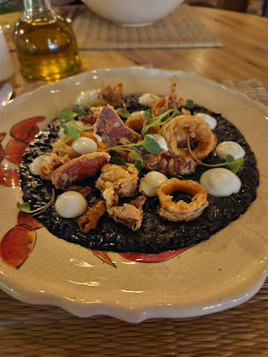 Gostoso e muito bonito, o Mii Rooftop trabalha com uma cozinha grega, cardápio enxuto e opções diferentes, como escolha do pescado do dia, ostras frescas, entradinhas típicas e drinks diferentes. O visual do rooftop não é especial, uma vez que é no segundo andar de um predinho gastronômico, o Vila Analia, a ideia é a opção de comer ao ar livre, seja em uma dia mais quente, ou em uma noite agradável. Além da entrada (pão com Kafka e molho de pepino), pedimos o risoto negro e, minha noiva, o Macarrão com frutos do mar. As porções são boas para uma pessoa, estava tudo muito bem feito e saboroso, a média dos pratos é em torno de uns 100, 110 por prato (individual). O atendimento, achamos um pouco estranho: perguntanos pro garçom sobre um prato, o mesmo não sabia muito sobre ele e indicou "olhar o cardápio virtual". Outro informou que é cardápio físico não é atualizado e tem coisas que não estavam disponíveis (achei estranho para uma casa em um local que vai completar 1 ano de existência nesse mês de junho de 2023). A casa não estava lotada, e acho que só o rapaz que dava suporte aos garçons, pra levar bebidas, era o mais empolgado em ser simpático, os outros pareciam estar meio "desdém" na forma de falar ou no próprio conhecimento do que o espaço possui... Atrapalhou a experiência gastronômica? Não. Acredito que todo mundo sempre está feliz e empolgado? Também não. Mas foi estranho, ainda mais para um dia tranquilo (domingo). Percebemos que o ambiente tem um espaço para DJ, provavelmente devem fazer alguns dias com noites mais badaladas, vale a pena perguntar para a casa. Considerações para quem pretende conhecer o restaurnate: vão conhecer. Coisas a considerar: o Estacionamento será uns 35 reais, achamos estranho que o estacionamento do local Vila Anallia enche de cones em torno do local, tentando evitar que as pessoas parem na rua, achei isso meio deprimente, una vez que qualquer um dos restaurantes do complexo sairá acima de 300 reais o casal, aparentou desespero. Qualquer dia alguém fará denúncia na prefeitura e o local pode acabar interditado por...