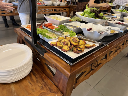 Read moreO almoço é 42,90 à vontade, e há uma grande variedade de saladas e tipos de pratos quentes. O churrasco é muito bom, mas poderiam melhorar mais o atendimento. Geralmente os atendentes do churrasco estão com muita pressa e te atendem de qualquer forma. As vezes colocando pedaços de carne dura/queimada ou somente gordura, que é impossível de comer, em seu prato, antes de você conseguir dizer que não gostaria daquele pedaço. A bebida é pedido na mesa, e já aconteceu de não trazerem, pois ficam passando de mesa em mesa apenas para dar um visto em sua comanda. As vezes passa mais de um garçom apenas para vistar a sua comanda. Sugiro melhorarem o atendimento dos...