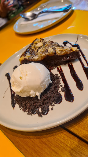 Por fim, a sobremesa foi um grandioso final para nossa refeição no Mocotó. O Bolo de Chocolate com Cupuaçu e Castanha do Pará era uma explosão de sabores, com o cupuaçu acrescentando um toque tropical e as castanhas do Pará dando uma crocância irresistível. O sorvete artesanal de cumaru que o acompanhou era o complemento perfeito.