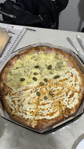 Pizza maravilhosa produtos de qualidade pizza bem montada. atendimento tanto por telefone quanto pessoalmente é TOP. O motoboy entregador é muito educado as Pizzas sempre chegam quentes e sem estar desmontadas.
