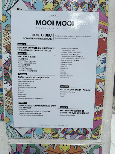From the menu, you can choose from a list of pre combined ingredients with interesting names or choose the ones you like to create your own recipe. You can choose from a cone/cup starting from R$24 to a R$31 milkshake. There is something for everybody’s taste, except if you have trouble with milk or sugar. They even have a vegan option, but no diet or lactose intolerant option.