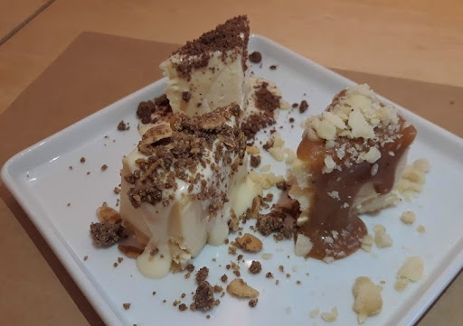 Na sequência, nada melhor do que eu experimentar o doce que dá o nome a casa. "Cheesecake". Mas pra isso eu tive que provar todas as coberturas antes de escolher. E você tem essa opção de experimentar as caldas antes de fazer o pedido. São tão boas que se torna difícil você decidir. No meu caso, eu fui abusado e pedi para partir o meu cheesecake em três e cada um com uma calda diferente e que mais me agradou. Ficou fantástico!
