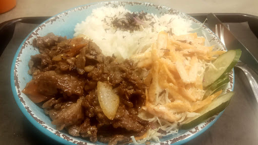 Hoje dia de saborear comida coreana, num prato que se diz tipicamente coreano e que mostra muito bem em tudo, mesmo que inicialmente a mistura de todos os ingredientes no mesmo prato não possa ser tão fácil de imaginar. A apresentação do prato é bonita, tudo parece bem separado, colorido e agradável, mesmo com cores contrastantes, parece que um ingrediente complementa bem ao outro. A comilança começou pelo arroz, que lembra um pouco gohan e vem com algo salpicado por cima, parecendo nori, que não altera o sabor, que é bom e serve bem como base. A carne é bem macia e fina, vem em tiras irregulares, mas não atrapalha a degustação. O sabor é complementado pelos acompanhamentos e o bom molho de shoyu e tem o bom sabor do gengibre para acentuar a mistura. A salada parece um elemento estranho ao prato que é bem quente, vem com bastante repolho e cenoura e um molho branco um pouco ralo, mostrando uma boa mistura temperada e até mesmo com os ingredientes quentes ficam tudo bem saboroso, mesmo que estranho no visual, faz muito bem ao prato. O lugar é simples e não há atendentes, mas deixa bem instruído como fazer e se manter no restaurante, que bem um bom visual e agrada pelo bom conforto. No geral, um prato bem feito e com sabores bem variados, que se complementam bem, agradando muito ao paladar, servido num lugar bonito e confortável, além do bom preço.