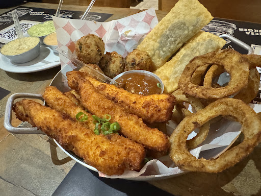 De entrada escolha o Quarteto Fantástico ($49) uma seleção com 4 bolinhos de arroz, chicken fingers, 2 pasteizinhos de carne e onion rings. A porção é para compartilhar e bem servida! Vem ainda com molhos tártaro, maionese da casa e o molho da vovó.