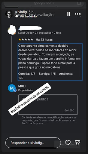 24/07 - Avaliação atualizada, pq já deu pra ver que no Muli é tudo uma grande palhaçada! O dono precisou convocar um mutirão de boas avaliações de seus amigos pessoais, após receber críticas sobre o mau atendimento e barulho excessivo, pra conseguir deixar as avalições negativas para trás kkkk que vergonha alheia! Ao invés do dono procurar uma boa relação com a vizinhança, ele ainda faz questão de debochar (vide foto anexada) e reforçar o quanto não respeitam as pessoas e nem as leis! Que gestão incapaz! Indo totalmente contra a proposta de hospitalidade, eles são nota 10 no desrespeito e na falta de noção. PS: é assim que se mede a falta de caráter de uma pessoa, e não o sucesso de um evento.