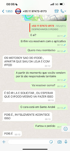 Fiz um pedido no estabelecimento Murph"s (via Ifood) de 2 Lanches. Vi que o pedido saiu para entrega fiquei aguardando, e após perceber que o mesmo estava indo sentido oposto de minha residência e cada vez indo mais longe até chegar em Santo André, sendo que moro do Eldorado, entrei em contato com o Estabelecimento simplesmente me falaram que não seria responsabilidade deles que eu deveria procurar o Ifood e sumiram me deixaram falando ao celular, nem tiveram empatia ou preocupação com o cliente. Não sou leigo a partir do momento que o fornecedor decide terceirizar o serviço de venda e entrega ele também é responsabilidade solidária por tal situação. Sei que a responsabilidade é do aplicativo porem poderiam dar o mínimo de suporte e tentar ajudar o cliente e não simplesmente ignorar, muita falta de profissionalismo e capacidade profissional. Deveria ter perguntado se eu queria o lanche novamente após o cancelamento do Ifood que eu pagaria diretamente ao motoqueiro na entrega mas não preferiram perder 2 vendas e perder o cliente, já indiquei o estabelecimento a pessoas e inclusive já fiz vários pedidos mas após isso estou tranquilo de pedir algo ai, percebi que só pensam em dinheiro e não em atender o cliente isso começa um declínio para que é empresário acha que se perder um cliente não da nada, mas la na frente vai perceber que eles sumiram, tendo em vista a concorrência forte e muitas...