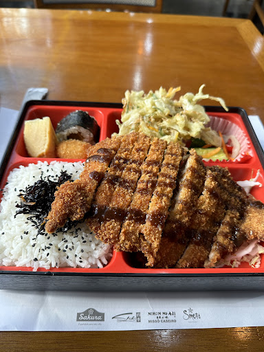 Fui na noite de domingo(09/06/24) após uma corrida no parque. Cheguei por volta das 20hrs, estava bem tranquilo...apenas 3 mesas ocupadas. O lugar é bem simples, mas para quem é fã de pratos quentes japoneses como eu....vai encontrar um delicioso bentô....que lembra muito aquela comida de mãe e de batchan. As opções de Obentô são diversos....porém a unica coisa que muda são as proteínas. Todos eles vem com um missoshiro, tempurá, salada Nara, salada de acelga, berinjela com missô, futomaki, korokke, omelete, gohan com umê, gobô/shimeji e uma proteína...no caso eu escolhi o Chicken Katsu. O bentô é muito bem servido e alimenta muito bem uma pessoa tranquilamente. Tudo estava muito bem preparado e saboroso. Recentemente fui em um concorrente que abriu na Dr. Rafael de Barros e posso dizer, o Chicken Katsu deles não chega aos pés do Chicken Katsu do Nara. É bem mais crocante o empanado e tem mais sabor, o molho que passam sobre o katsu contribui pra ficar com mais sabor. É uma excelente opção para um almoço ou jantar rápido e sem muito requinte, mas com uma comida gostosa. Destaco tbm o serviço....tanto o atendimento que é bem cordial e gentil quanto a entrega do prato, que é bem rápido.