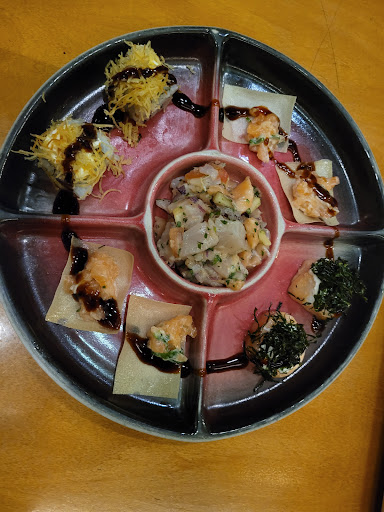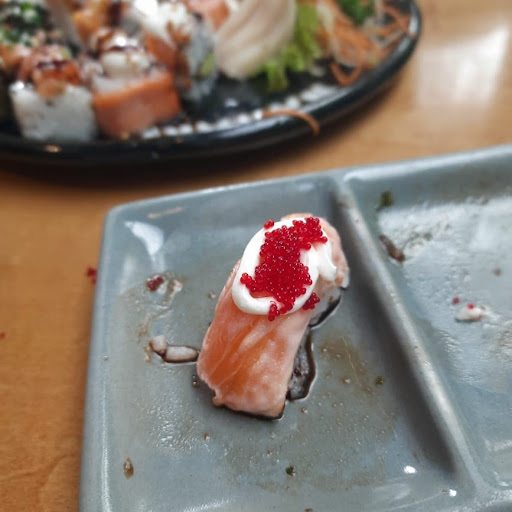 Sobre a comida: entrada gostosa (coloquei foto), porém acredito que deixam pronta um pouco antes porque os sushis que tinham batata palha em cima estavam murchas. Porém, o resto tava saboroso, inclusive o ceviche. Depois vem a barca (também coloquei foto) que achei que faltou variedades, como estávamos em dois, achei que veio pouca coisa também e acabamos pedindo um outro combinado. O hotroll das duas vezes que foi servido (nas duas barcas), estava bem morno, quase frio. O peixe estava saboroso e fresco. Percebi que tem o atum no rodízio, porém não é mandado sashimis dele espontaneamente, apenas se você pede para vir, que foi o caso(postei foto). Os temakis (postei foto) são bons, recheados do início ao fim e um tamanho adequado para um rodízio, considerei de tamanho mediano e achamos ótimo assim. Shimeji estava gostoso, bolinhos de salmão também, e a Lula estava uma delícia. O rolinho primavera, assim como o guioza também eram saborosos, e sem muito óleo como já vi em muitos restaurantes.