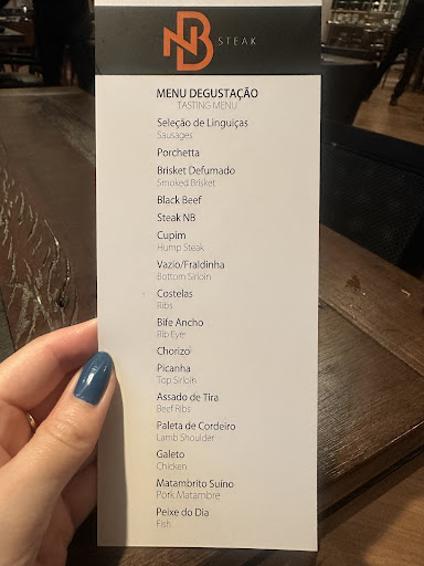 Read moreThis was a good place to be. There you have a few types of salad to choose from and the portions were medium to small (just to prepare you for the main course). You can ask for any salad anytime and whenever you fell like to. Then different cuts of meat are presented to you randomly by the waiters they have (not all at once, of course) but you can ask for any cut in their menu any time. They have some bottles of wine there but only the well-known beers from the brazillian market (which disapointed me) and they have the usual sodas and juices too. They serve your table, right from the beginning, with toasts, pão-de-queijo, fried polenta sticks and other usual steakhouses stuff. The ambiance has dimmed lights and the aspect was appealing and cozy - it was clean and neat too. They have, besides the meat, roasted heart of palm tree, cooked mushrooms and other portions of side plates being served by their waitress. The price was a little bit too high even for an upscaled place but...